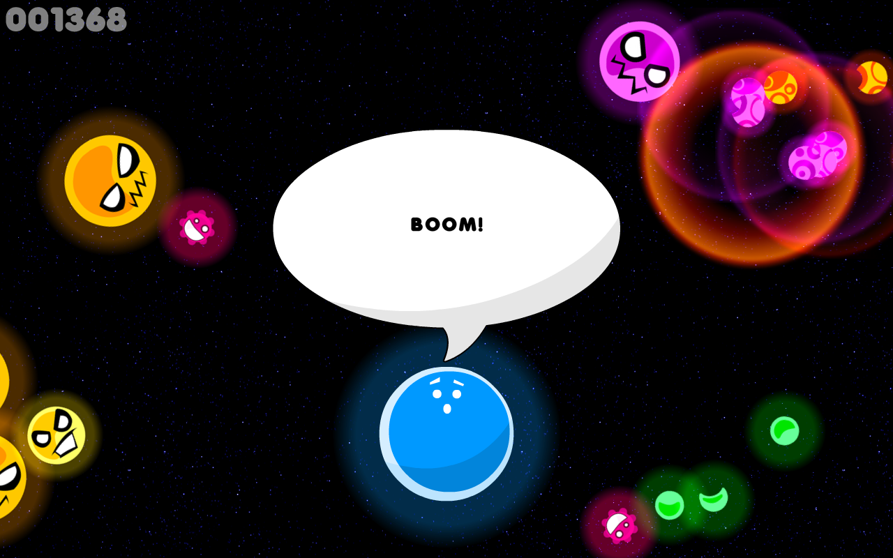 PapiBouncen tapaan Bukan pelimekaniikka on miellyttävästi kaikesta turhuudesta karsittu, zeniläistä koulukuntaa edustava virtaviivainen otus. Bukaa rahdataan ruudulla sormella vetämällä, kohti kiitävät ulkoavaruuden kappaleet joko taputellaan kauemmas tai läsäytetään uuden Kuiperin vyöhykkeen alkusiemeniksi painamalla sormea pidempään körmyn kohdalla. Potentiaalisesti haitalliset objektit jättävät jälkeensä joko terveyttä ja pistesaldoa kartuttavia uraaniytimiä tahi…okei, tässä kohtaa en enää voi päteä avaruustermistön eksaktilla käytöllä, punaisia hymysuisia pommiolioita.
